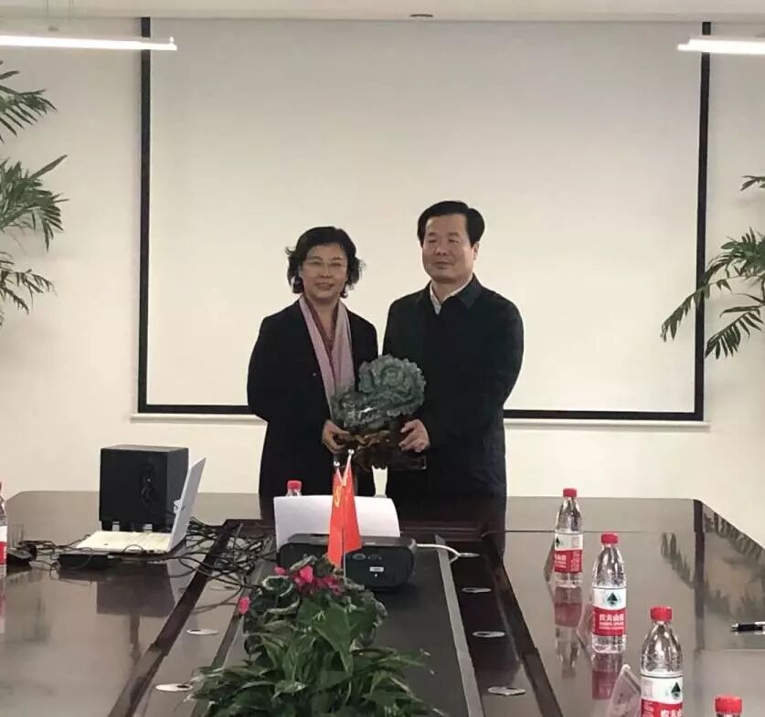 我校董事长兼校长韩颖女士代表全体教职员工接受王磊区长的赠礼,王磊区长对我校的教职员工进行了亲切的慰问并合影留念!